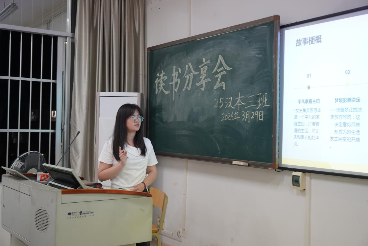 2025级汉本三班于2026年3月29日晚,在五综教学楼603教室举办本学期第一次读书分享会,以阅读践行青年成长理念。