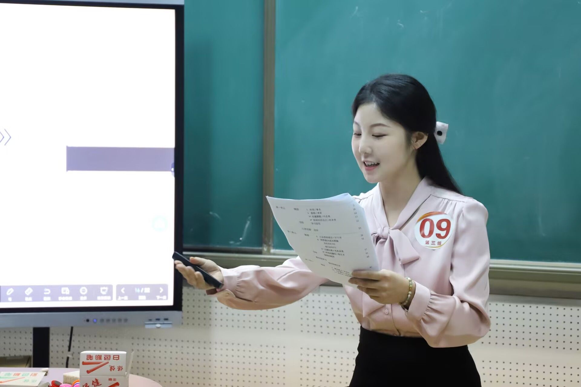 此后,微格教室成了她的“练兵场”。每次试讲结束,她都会逐帧复盘录像,用不同颜色的笔标注优化细节:“提问设计可更具启发性”“板书排版需突出重点”。为设计一个自然的课堂过渡,她在走廊踱步数十次;为突破教学难点,她尝试多种讲解方式,邀请同学模拟课堂获取真实反馈。这份追求极致的态度,终于在2024年全国师范生教学技能竞赛“田家炳”杯中绽放光彩。