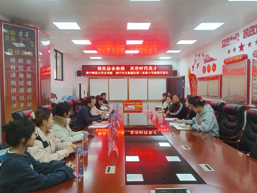 党委副书记吴幼坚、副院长张淑云一行前往南宁市五象新区第三实验小学,开展“深化访企拓岗 共育时代英才”主题座谈交流。五象三小校长梁运均、副校长沈毅等参与接待与交流;四虎影院
