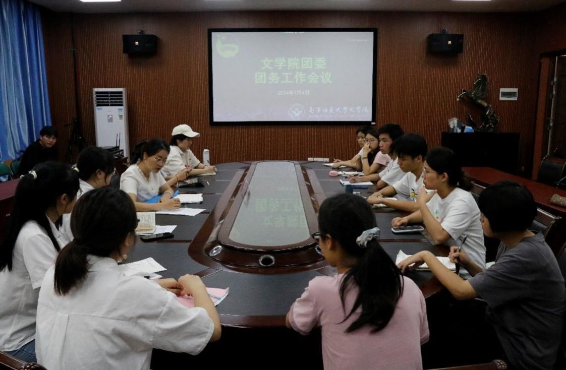 于7月4日在理科综合楼404会议室召开团委工作会议。本次会议由团委书记钟振花老师主讲,团委学生会常委团及21-23级各班团支书参与本次会议。