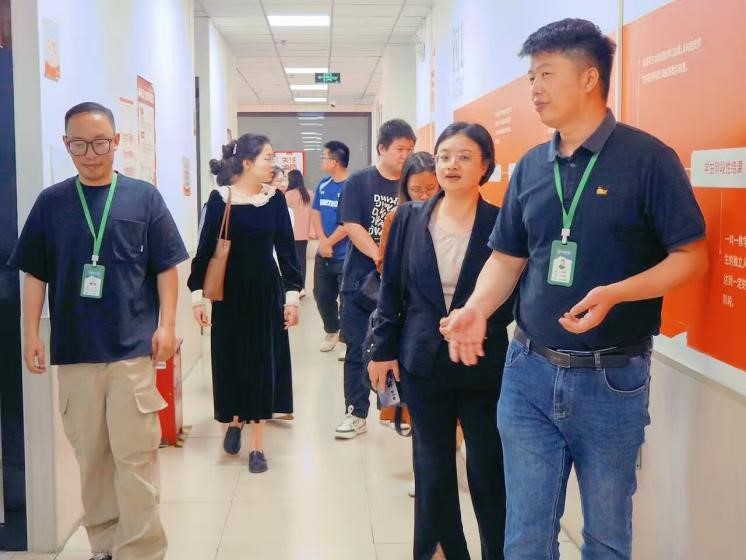 在志公教育,调研组实地参观了企业培训基地和总部办公环境,深入了解企业发展历程、业务布局及人才需求。座谈会上,旷晓霞书记介绍了四虎影院 人才培养特色及毕业生专业优势,并重点推荐了汉语言文学、秘书学、戏剧影视文学等专业学生的实践能力和职业素养。志公教育负责人表示,企业近年来业务规模持续扩大,亟需具备扎实文字功底和教学能力的优秀人才,期待通过专场招聘、实习实训等方式吸纳更多文院学子加入,同时计划进校开展职业规划宣讲,助力学生提升就业竞争力。