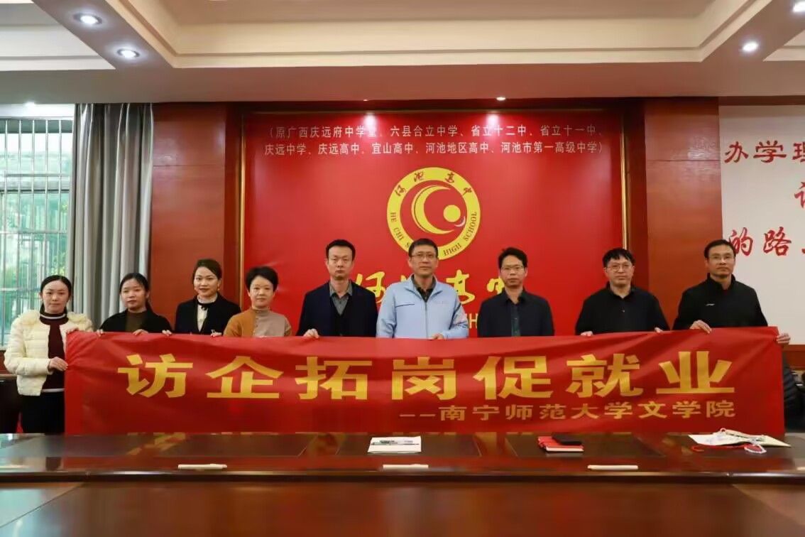 领导班子及教师代表前往河池高中开展访企拓岗专项活动,对接学生就业推荐与来校招聘事宜。