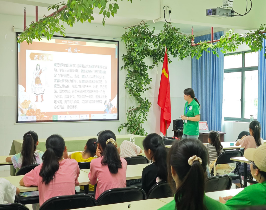 活动开场,志愿者从多维度生动讲解壮族三月三、藏历新年等少数民族传统节日。通过问答游戏、视频鉴赏,让小朋友沉浸式感受节日魅力,加深对民族文化的认知。此外,志愿者还指导小朋友制作壮族头巾,现场气氛热烈。大家在动手实践中,对民族文化有了更深刻的体验。