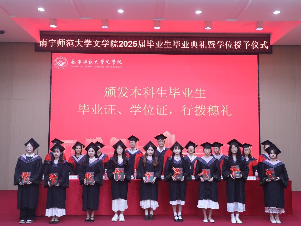 在典礼的最后,学院领导和老师们为毕业生们一一正冠拨穗,颁发毕业证书。毕业生们身着学位服,手持证书,脸上洋溢着喜悦和自豪,现场充满了温馨而感人的氛围。