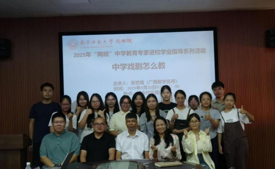 ,陶班负责人王毅老师、语文课程与教学论教研室陈亚飞老师,学院2023级陶班学生、2024级学科语文研究生和2025级学科语文研究生参与活动。