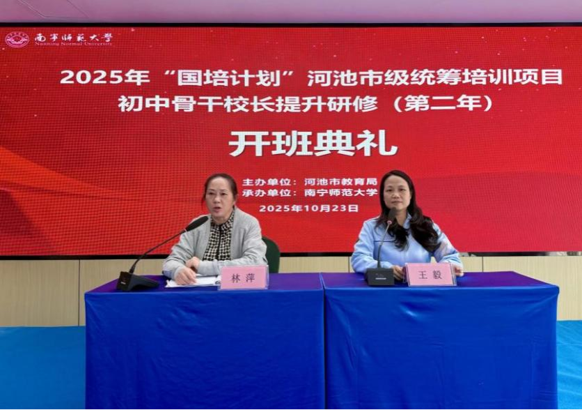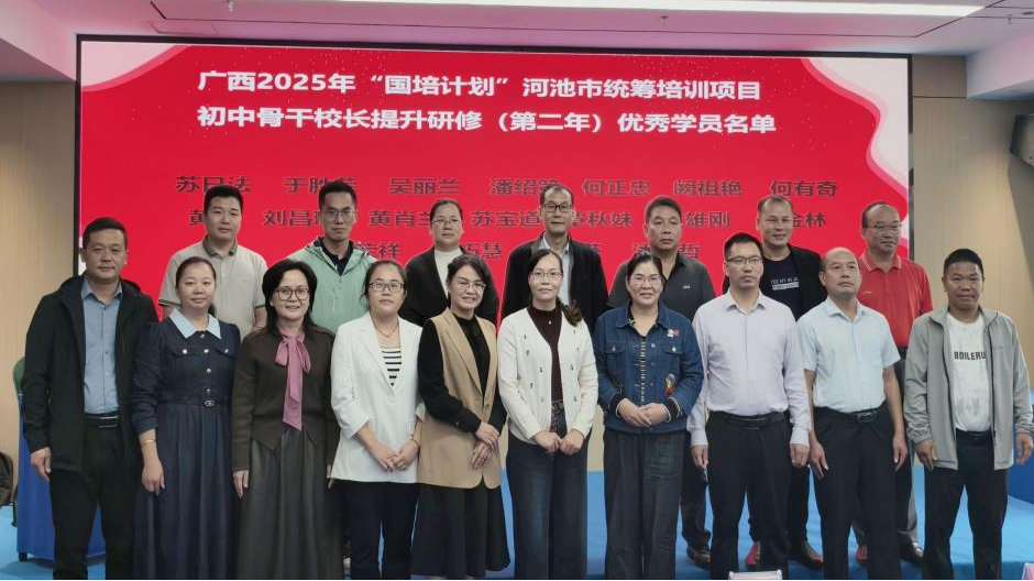承办的广西2025年“国培计划”河池市统筹项目——初中骨干校长提升研修培训(第二年)顺利完成全部课程,圆满落下帷幕。本次培训为期12天,聚焦乡村教育振兴、校长专业能力提升、数字化转型等核心议题,通过专题讲座、基地研修、分组研讨等多元化形式,为河池地区初中校长搭建起学习交流与实践创新的平台,为区域基础教育高质量发展注入新活力。
