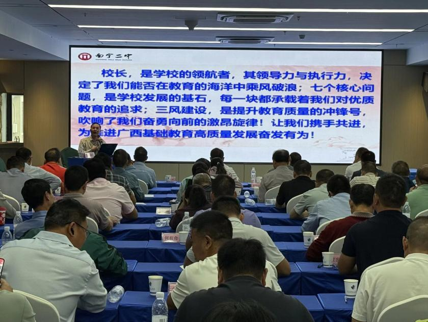 为期12天的培训紧扣校长履职需求,课程覆盖多个核心领域。理论层面,既有师德建设、学生心理健康管理,也有生成式人工智能应用、校长数字化转型领导力;实践环节,学员深入南宁市新民中学、南宁市天桃实验学校等多所名校开展基地研修,通过观摩校园文化建设、听取一线专家讲座、研讨特色课程设计破解办学难题。