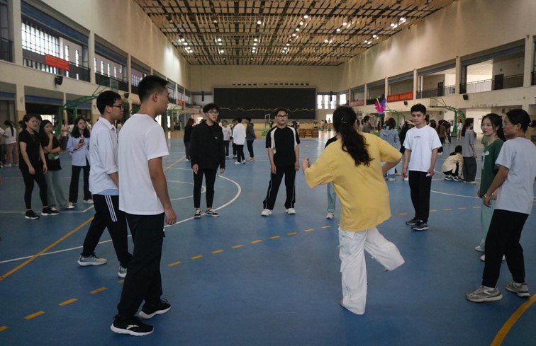 趣味运动会在体育馆如期举行,文苑学子和越南留学生共同参与。