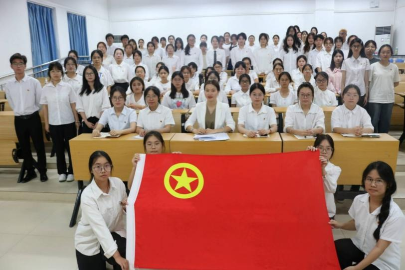 随后,来自不同年级的候选人依次上台进行自我介绍并讲述自己的入团动机。他们大方展示竞争优势、发表对共产主义青年团的看法并展示自己的入团决心。经民主评议与投票,梁鹤琼等10名同学成为新发展团员,被授予团徽,宣誓入团,为团组织注入新鲜血液。