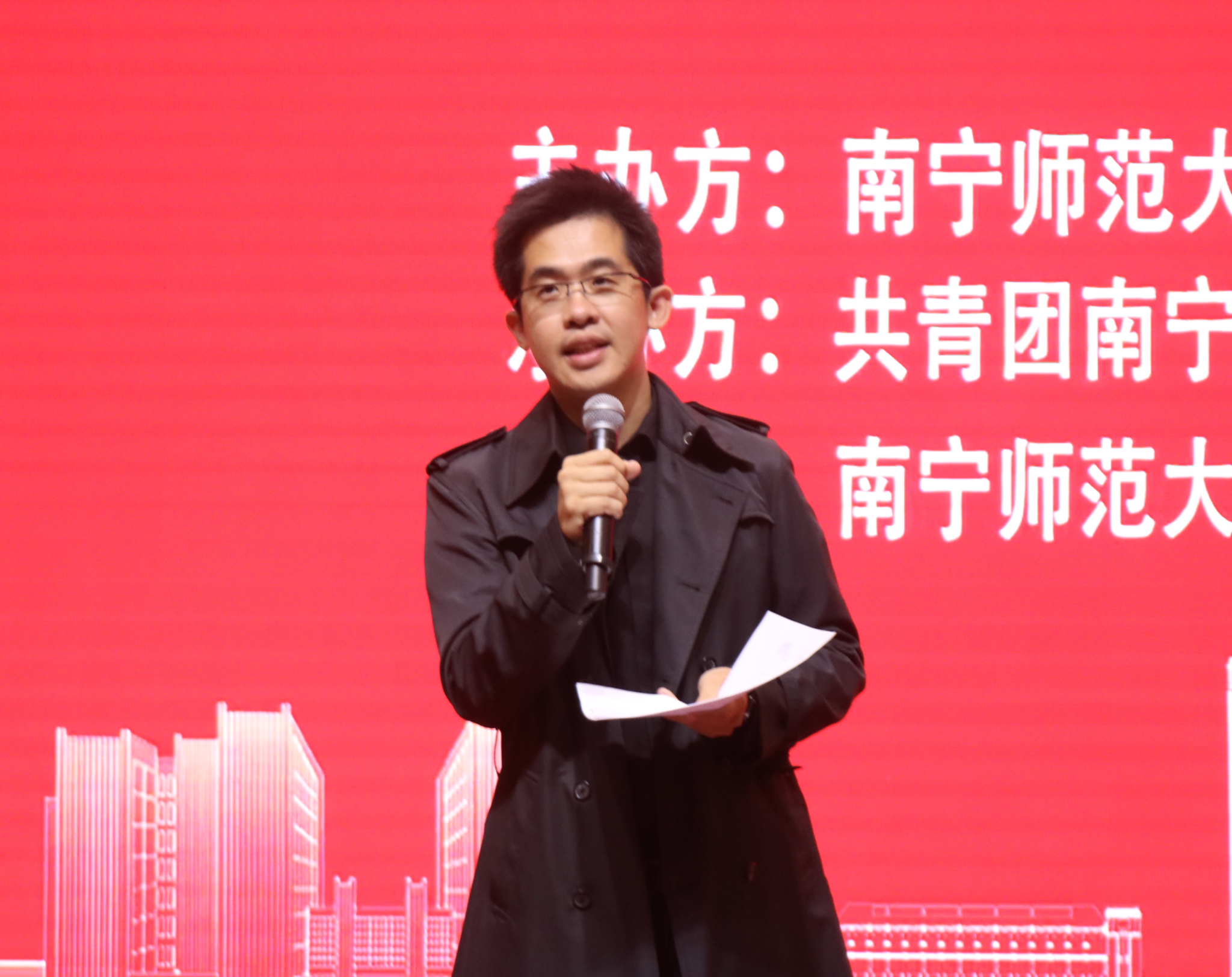 党委副书记吴幼坚上台致辞。他表示,本次比赛旨在激发24级同学的合作精神,增强团队意识和班级凝聚力,希望通过此次比赛,展现出文苑学子的青春风采和新时代青年的精神风貌。