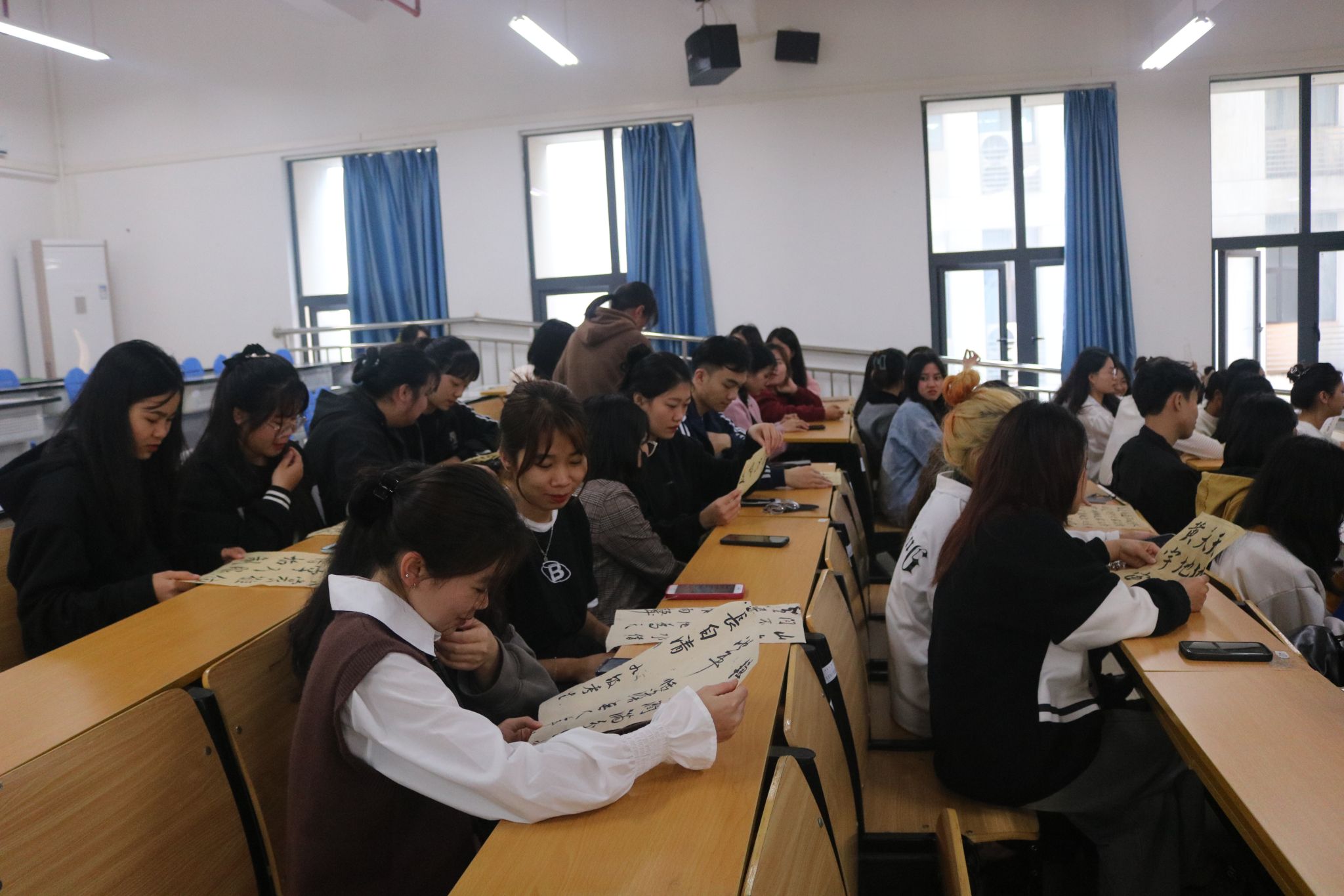 此外,四虎影院 学生在交流会现场向越南朋友发放由学院学生书写的毛笔字,胡语同学介绍了中国书法遵循从右往左写的规律,以其中一篇书法作品《赤壁赋》讲解了中国古代文人墨客的潇洒与自由,同时也向大家展示了中华汉字的独特魅力。