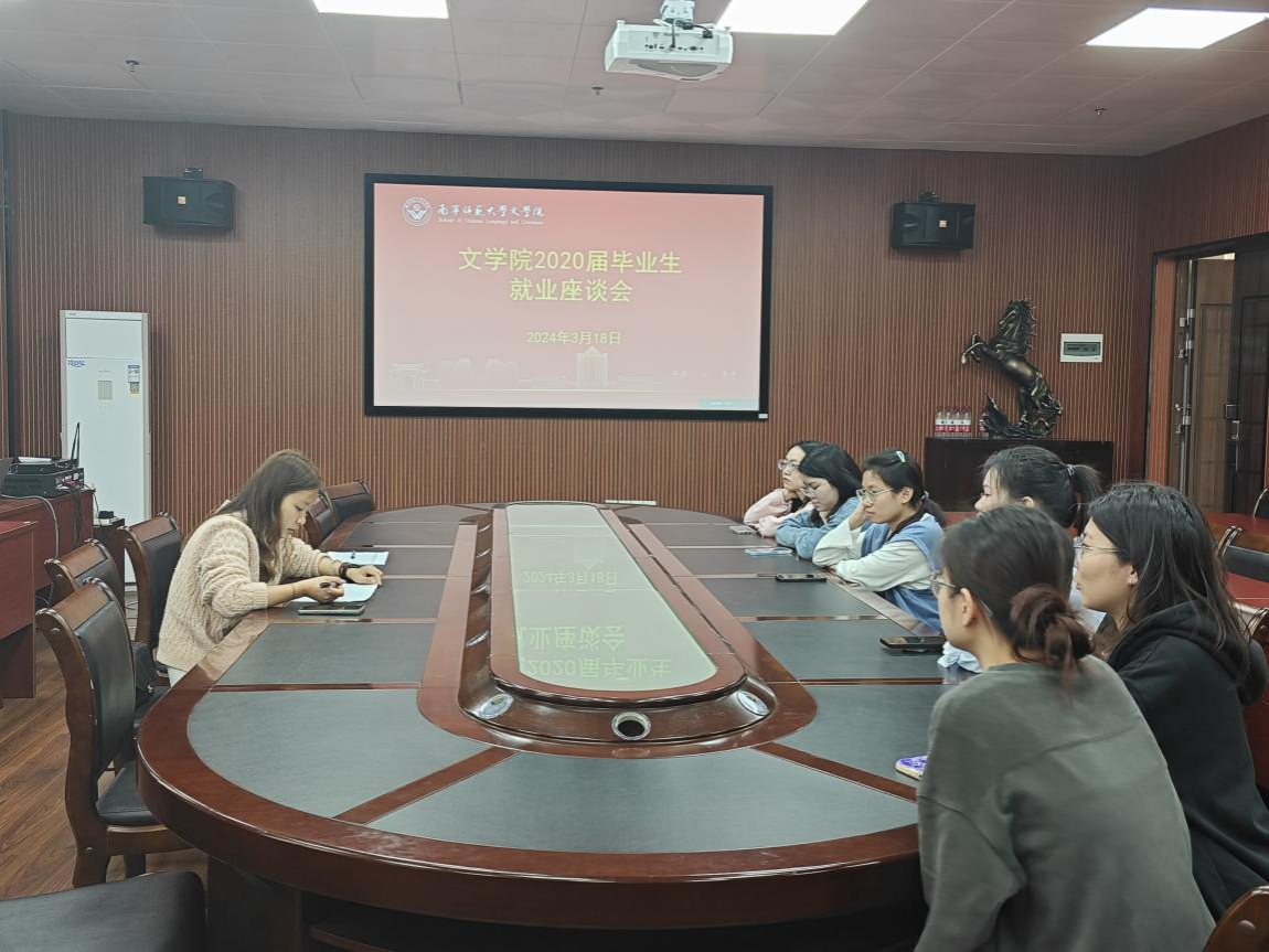 于3月18日在五合校区理楼404会议室召开了2024届就业座谈会。20汉一班班主任梁晗昱老师、辅导员罗茜老师,兼职辅导员黄海婵以及2024届部分学生通过线下和线上相结合的形式参与了此次就业座谈会。