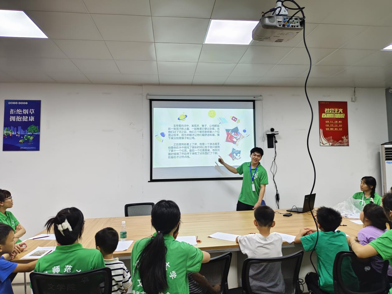 本期志愿服务活动的主要内容是赏析中华优秀传统文化故事,由四位讲解员轮流授课。首先,讲解员由看图猜故事的互动引入课堂,随后,讲解员们依次分享了《贪泉》、《女娲造人》和《十二生肖》的故事,通过图文讲解和播放相关视频,调动学生情绪,同学们也踊跃回答问题,课堂气氛活跃。期间,志愿者们穿插了绘画、手工等互动环节,在师生共同的努力和配合下,一个个可爱的小动物呈现在众人面前。在这短短的两个多小时中,志愿者们和小朋友们相处十分融洽,彼此建立了深厚的情谊。最后志愿者和小朋友们合影留念,在离别之际,纷纷对下次的见面表达了期待。